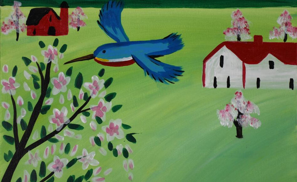 Painting & Pints: Maud Lewis  – British Kingfisher & Apple Blossoms