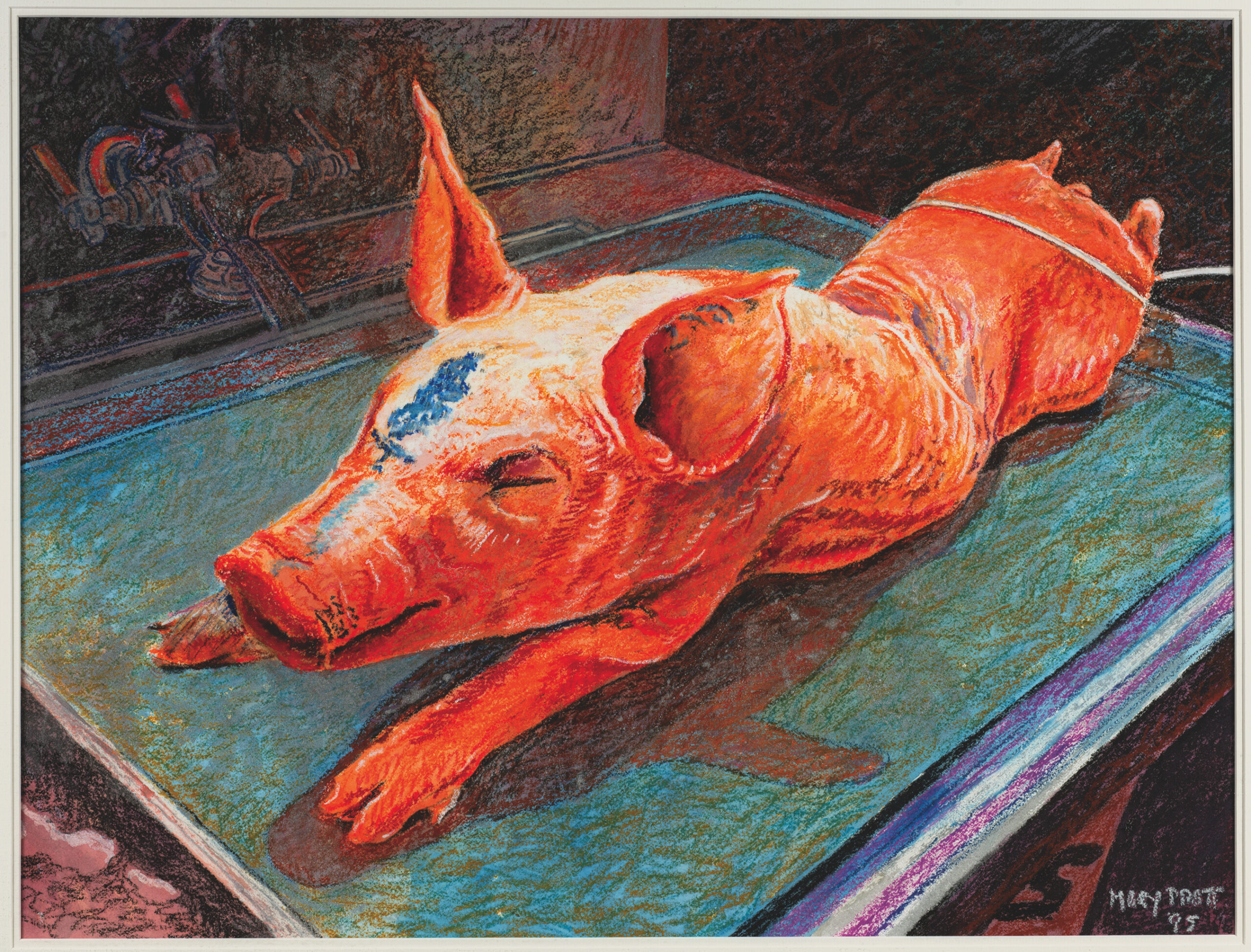 Mary Pratt’s practice centred on an unflinching yet celebratory attention to domestic life, which she elevated to the realm of high art through a meticulously executed photorealist method. Working from photographs that captured fleeting light and ephemeral moments, she reproduced not only the scenes themselves, but also the camera’s distortions and depth of field, sharpening the viewer’s awareness of perception. For Pratt, light was the true subject—glinting on fish scales, glowing through jars of jelly, or shimmering across a silver serving tray—transforming the everyday into the visually extraordinary. Beneath this luminosity, her still-lifes often registered the tensions and “latent anxiety” embedded in domestic roles and relationships, offering pointed social commentary on women’s experiences through scenes that are at once intimate, exacting, and psychologically charged.