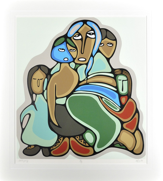This idea of separate yet connected is emphasized in Belonging, which shows a group of children snugged close to the central grandfather figure. The body shapes in this work flow towards the centre – towards the Grandfather – creating a movement that is both physical and emotional.