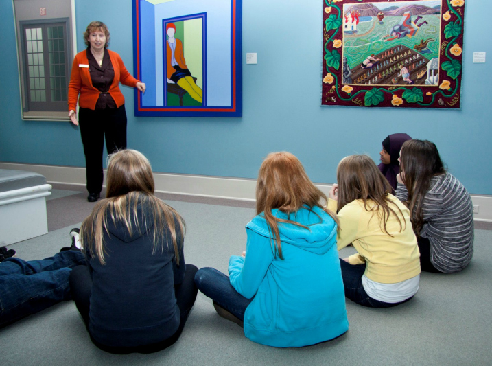The word docent is derived from the Latin to teach or to lecture. The Gallery uses this term to those who offer specialized tours for students of all ages. In the finest international tradition, our docents deemphasize the lecture component and instead use an interactive questioning technique with students. We try to bring the art to life, creating a personal experience for each viewer. Our docents meet each Monday morning for training in art and best collaborative practices for animating the art. During the school term, we each try to deliver one student tour per week.